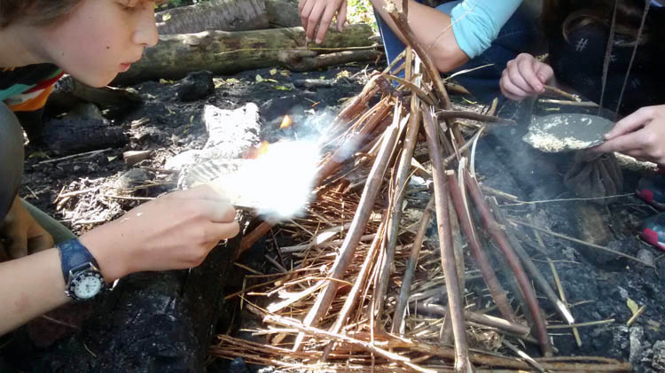 Die Schüler*innen – verstehen, wie Menschen früher in der Steinzeit gelebt haben. /- lernen Feuer mit Feuersteinen zu machen. / – kochen mit heißen Steinen. / – lernen Pfeile zu basteln. / – üben den Umgang mit Pfeil und Bogen.