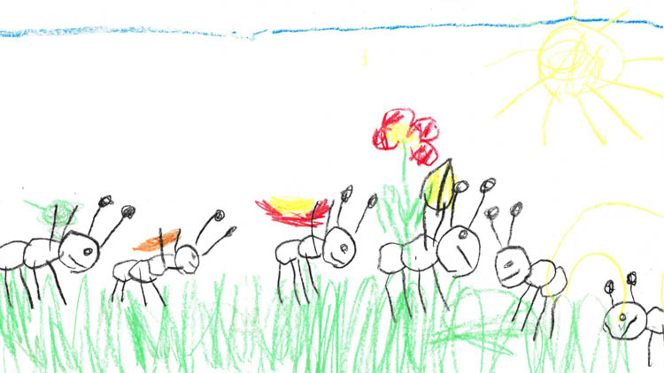 Die Kinder erweitern ihr Wissen über die Ameise und erfahren, welche Bedeutung die Ameise für Wald und Wiese hat.