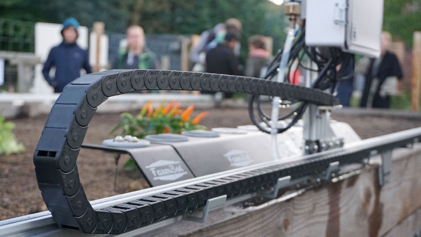 Mit dem FarmBot-Projekt steigen wir ein in die Diskussion, wie Dezentralisierung, Digitalisierung, Open Source und KI (Künstliche Intelligenz) dabei helfen können, die Landwirtschaft ökologisch zu transformieren und auf kleiner Fläche im urbanen Raum attraktiv zu machen. Dazu beobachten wir u. a. Ernteerträge und Ressourcenverbrauch und geben die gesammelten Erkenntnisse nach dem OER-Prinzip (Open Educational Resources) an Interessierte weiter.